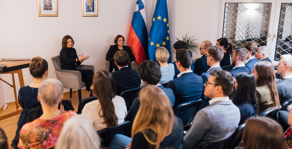 A musical opening programme by the renowned zither player Tajda Krajnc was followed by a discussion with the Minister led by the Slovenian Ambassador to Germany, Dr Ana Polak Petrič.